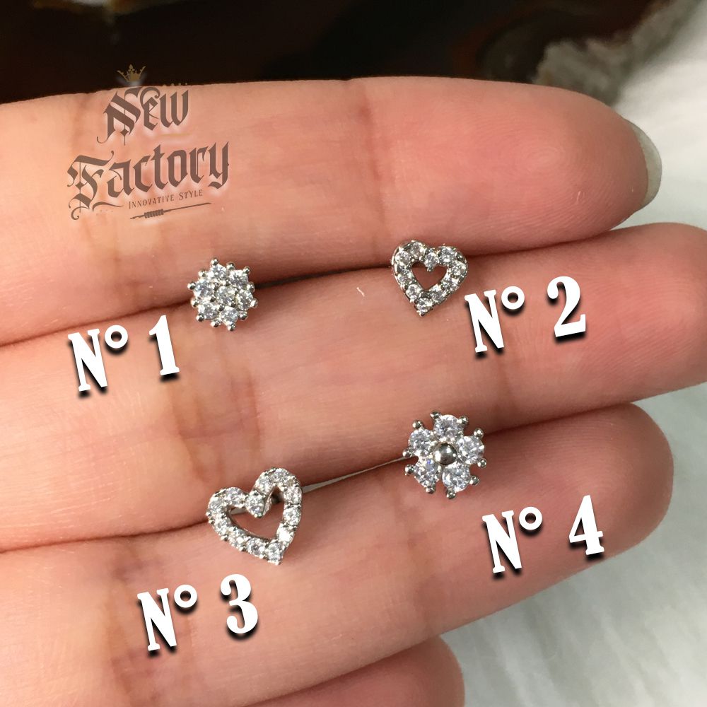 - Piercing de orelha, microbell diversos cravejado, folheado a ouro branco (ródio).